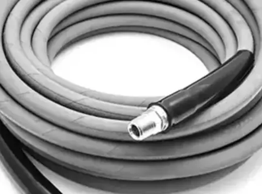 KobraJet Non Marking Grey Kobrajet Hose is available in various lengths to accommodate all cleaning scenarios. This true non-marking hose now features a thicker inner wall to prevent gashes and ruptures and is great for any pressure washing application. Kobrajet is manufactured out of high quality components and assembled in the U.S using 'Bite the Wire' technology when installing the 3/8" rigid and swivel fittings. This technique guarantees that your hose ends will stay in place and will not rupture or blow off during pressure spikes. These advanced fittings also have a longer life with superior resistance to corrosion due to the salt spray test which yielded results of 125 hours before corrosion was detected; nearly twice the industry standard, meaning your hose will last longer, especially in abusive environments.