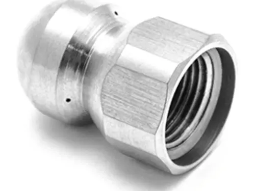 3/8" Stainless Steel Fixed Sewer Nozzles are ready to get down and dirty with a meticulously designed button nose Stainless body. As pressurized water passes through the body and exits through the three rear facing jets a piercing jet exits the front puncturing any impasse. The three rear facing jets pull the nozzle through the pipe so feeding it is easy from your position at the entrance. This nozzle readily suits the needs for any residential application and is used by both Pro's and Weekend Warriors! For reference: 55 translates to a size 5.5 orifice.