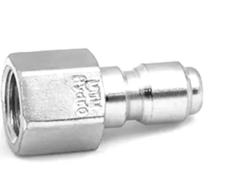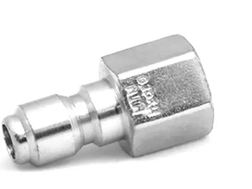 Hydrojet Plated Steel Plugs offer a a fast and economical QC system for your high pressure joints. As a rule of thumb, 3/8" fittings are normally found between the pump and the spray gun where 3/8" hose is commonly used. When purchasing Plugs and couplers the Male model has exposed threads while the Female version has threads on the interior of the fitting. See image for reference.