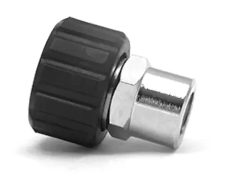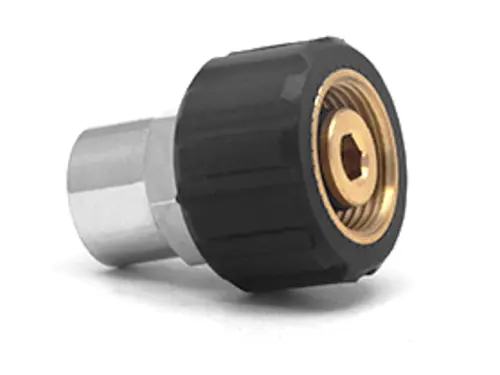 M22 Twist Seal Coupler fittings were developed as the original high pressure fitting for the European market where they are still used today. These M22 style fittings may not be fast but are now widely used in the residential market as a safe and secure way to provide a consistent method for attaching and detaching fittings. When purchasing M22 fittings, the black portion is considered the Coupler. The brass exposed threads are considered the Plug (see 24.0024 for reference) and is meant to thread into the black coupler.